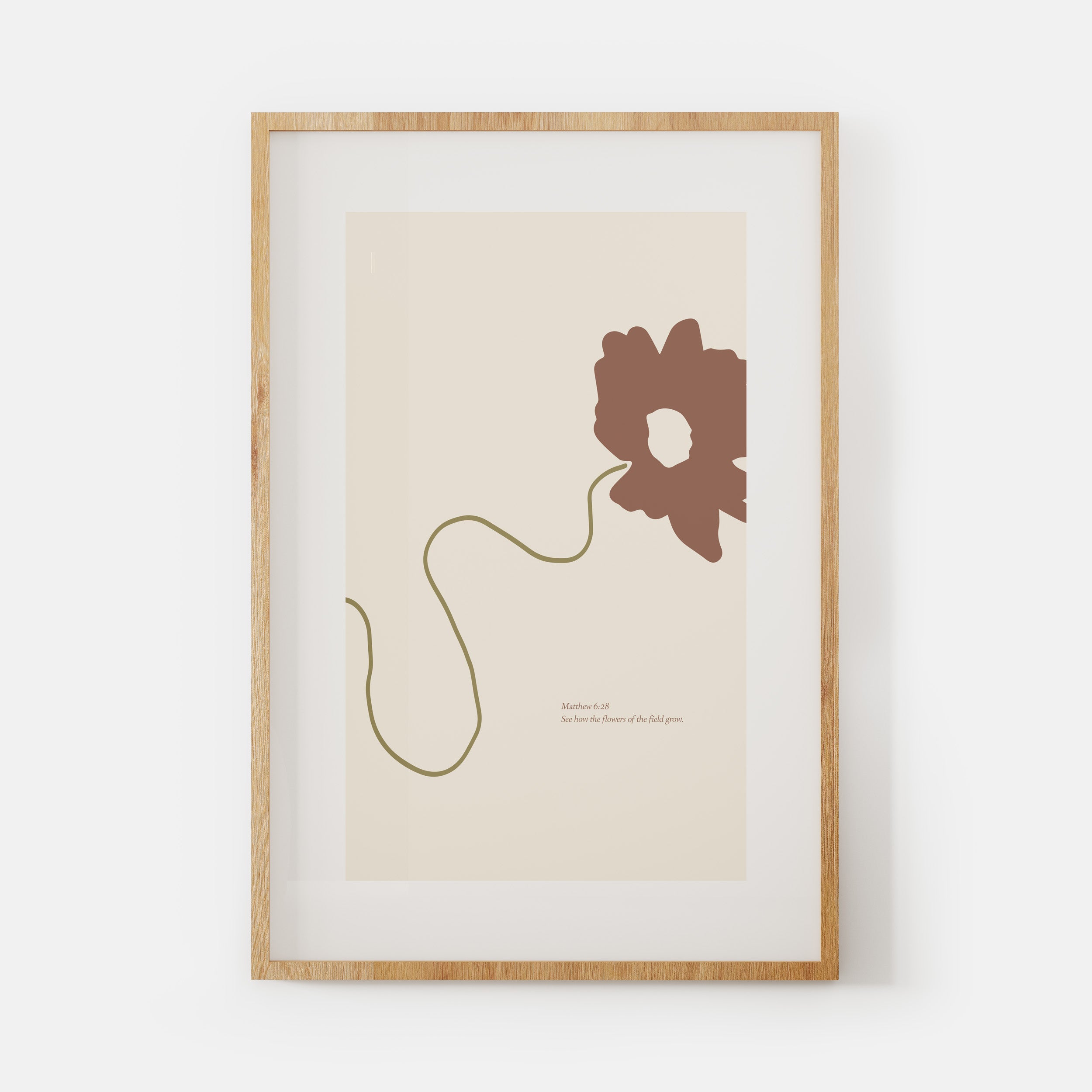 Inspired by Matthew 6:28 — See how the flowers of the field grow. Combining muted pastel colours, abstract minimalism and scripture - this print was created to remind us of the real peace of God that crushes anxiety in Jesus name.