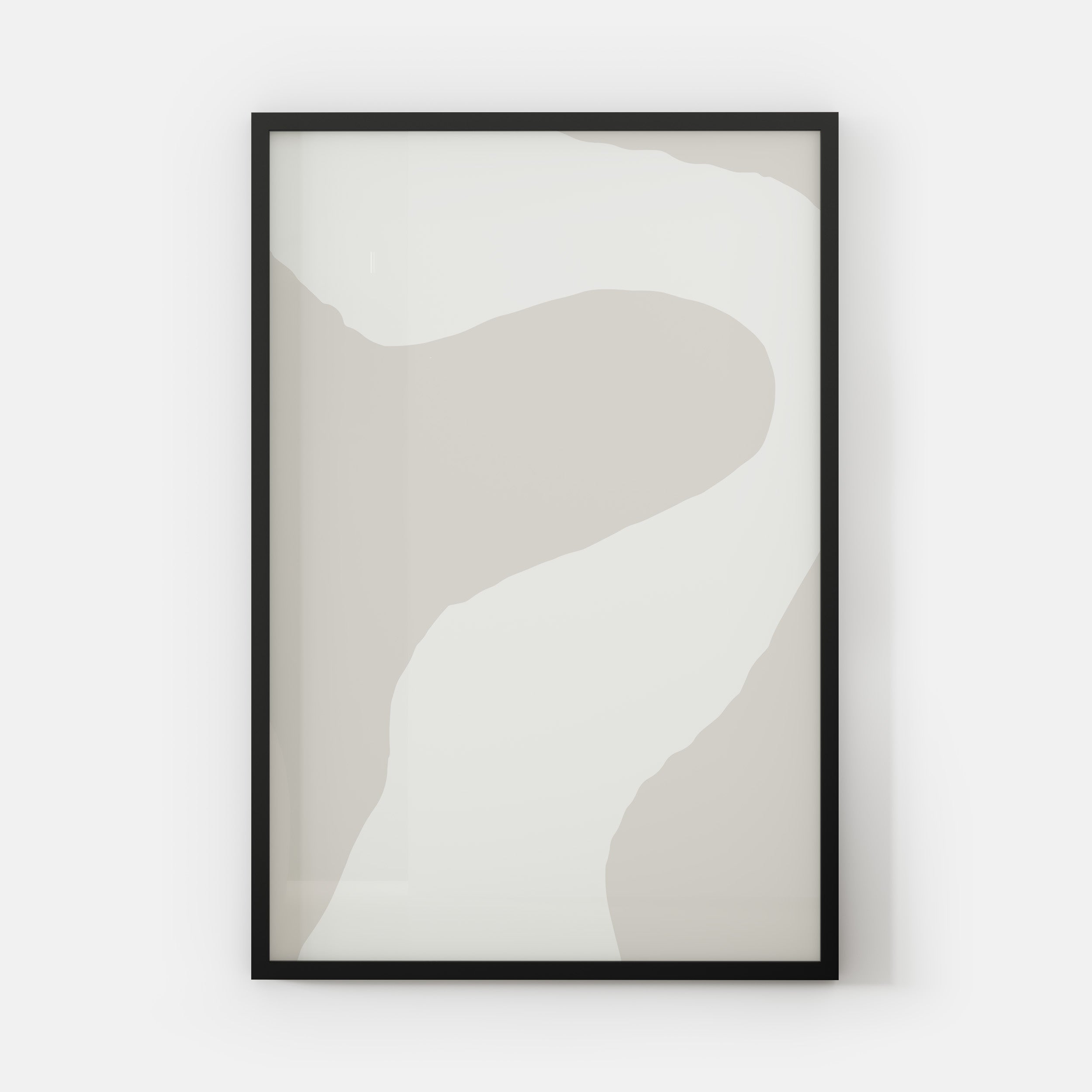 This minimalist art print features elegant flowing forms in soft neutral tones, creating a serene and contemplative atmosphere. The piece brings a sense of peace and spiritual calm to any space.