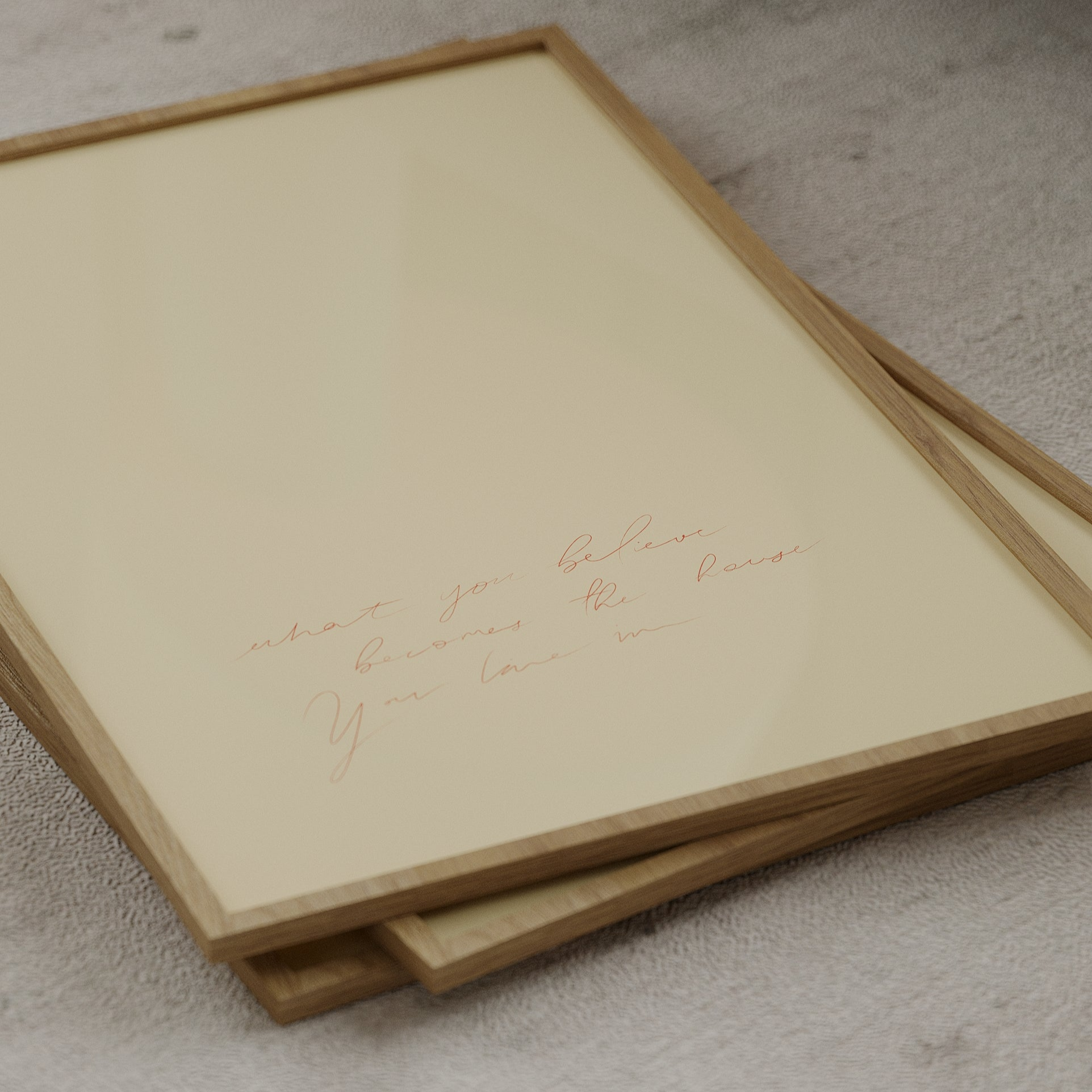 This sand coloured piece features a handwritten note that says 'What you believe becomes the house you live in'. We know scripturally and from our experience that what we believe is powerful and determines how we live. The modern Christian art print reminds us to reflect on what we think and believe and encourages us to submit it to the scriptural truth.