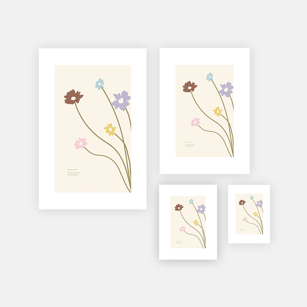 Inspired by Matthew 6:28 β See how the flowers of the field grow. Combining muted pastel colours, abstract minimalism and scripture - this print was created to remind us of the real peace of God that crushes anxiety in Jesus name.